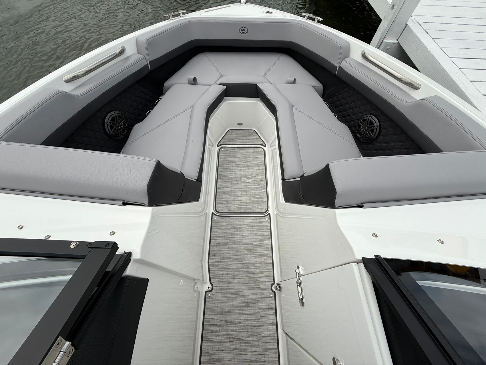 Inside, you’ll find a Frost and Slate interior, complemented by the Wood Interior Accent Package for an upscale and inviting atmosphere. The LED RGB interior accent lighting allows you to set the perfect mood, whether you're cruising at sunset or entertaining under the stars.