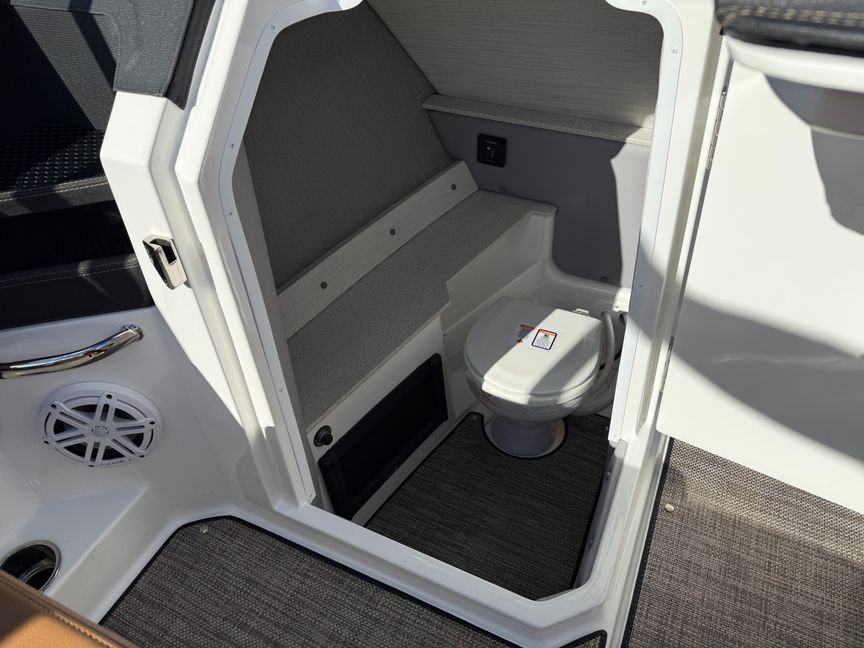 Convenience meets comfort with thoughtful upgrades like the electric porcelain head, cockpit and bow tonneau covers, windlass with all-chain anchor, and trim tabs with indicators—providing smooth handling and easy anchoring in any conditions.