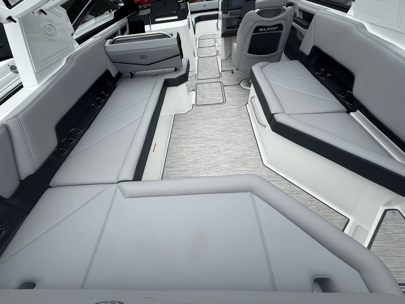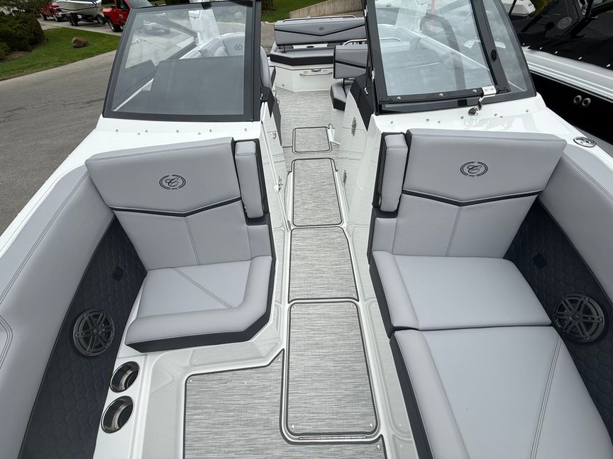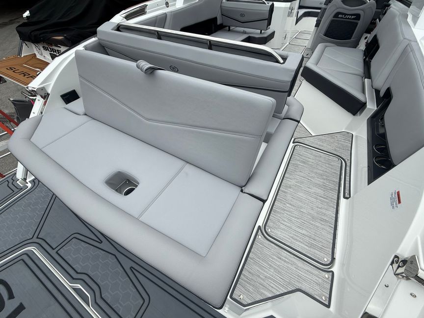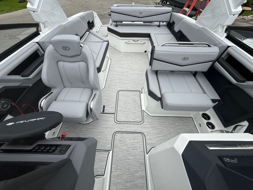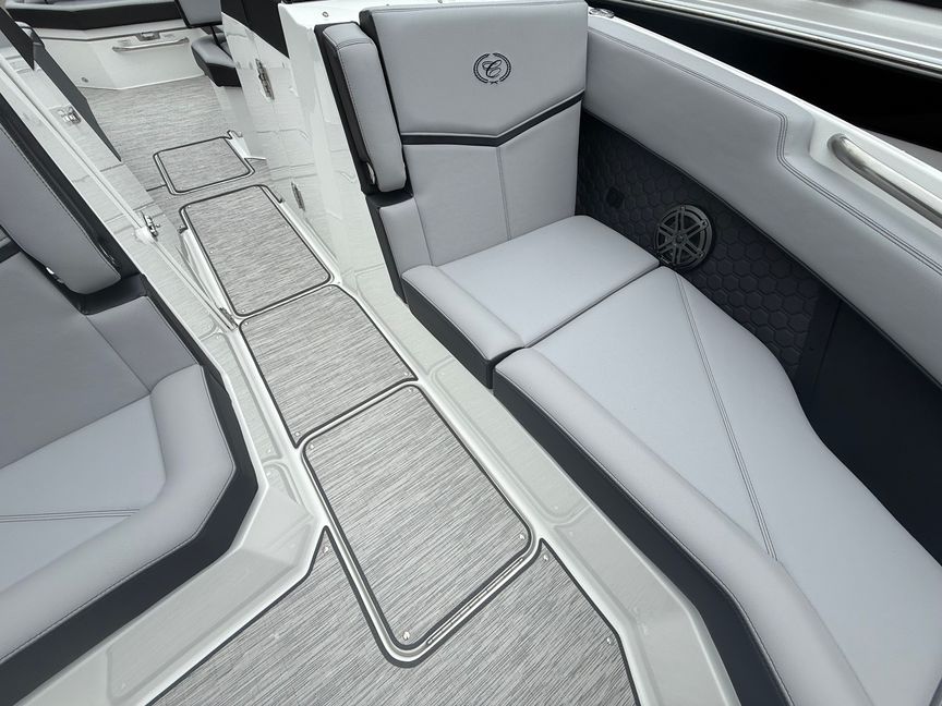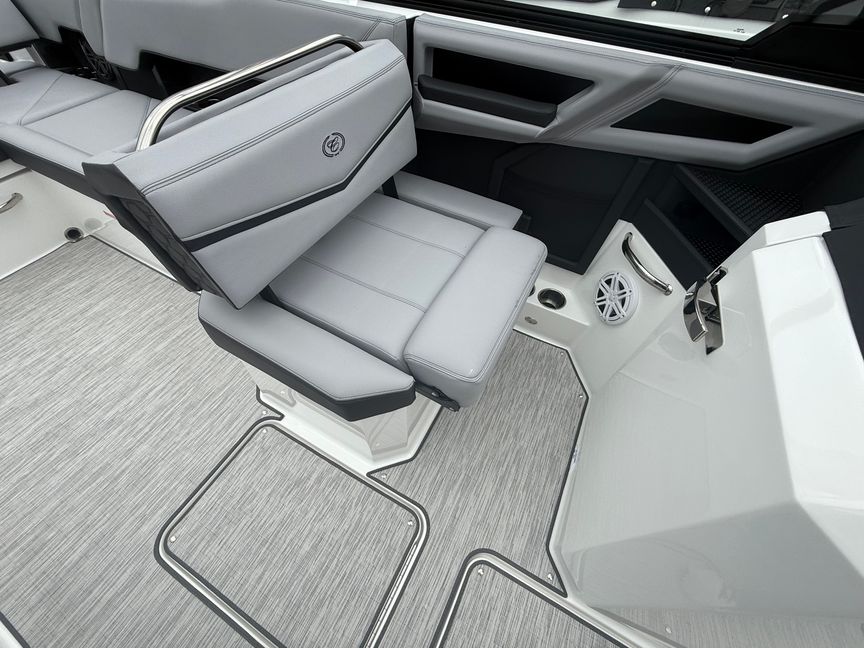 At the heart of this R8 Surf is the Volvo V8-430CE forward-facing engine, delivering next-level performance with deep reserves of torque and precision control. Whether you’re building the perfect endless wave or cruising with a full crew, this powerhouse responds with authority—smooth, quiet, and effortlessly capable.