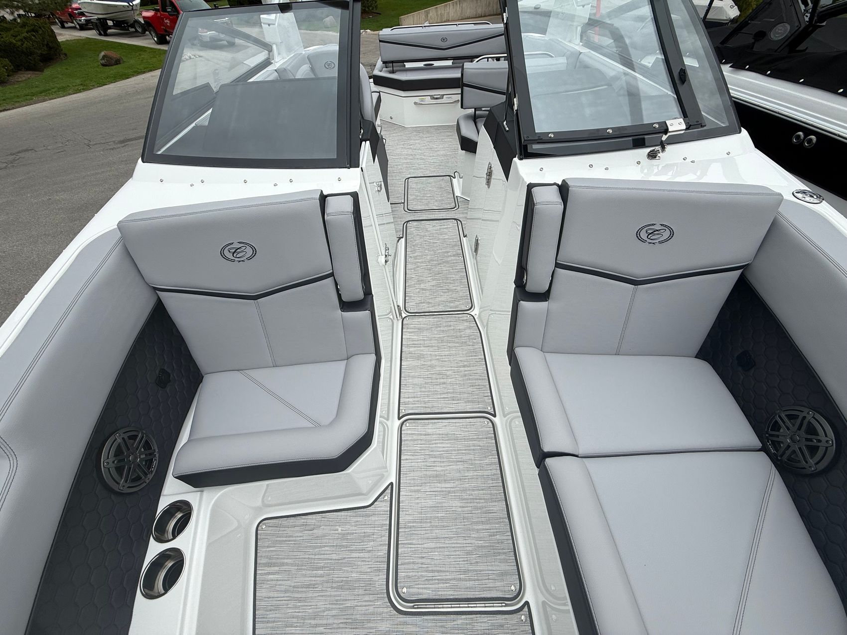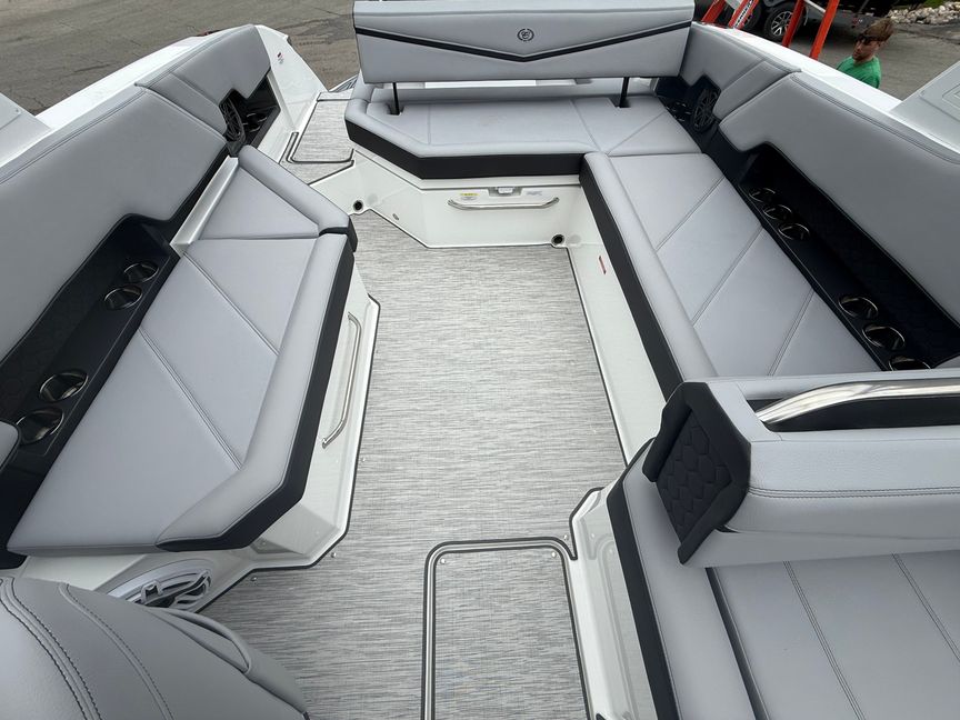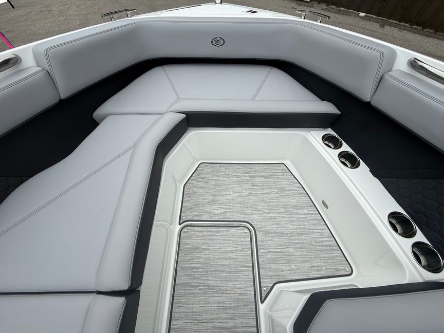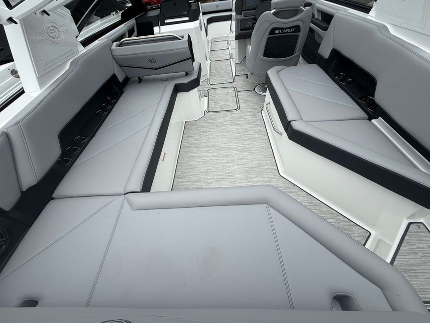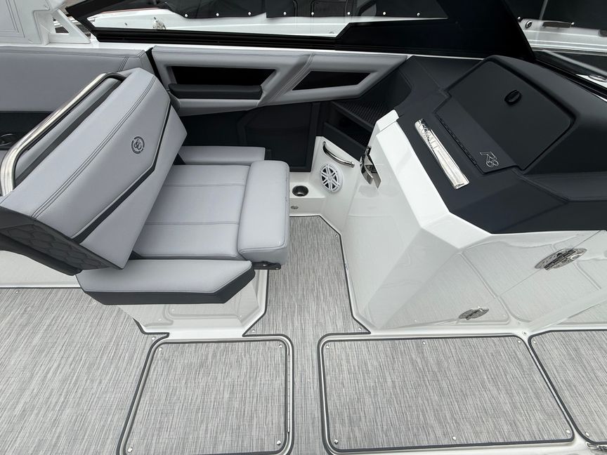 This R8 Surf is built for those who take their watersports seriously. Equipped with PTM ClampForce 3.0 wakeboard racks, your gear is always secure and ready, while the advanced surf system paired with precision trim tabs lets you dial in the perfect wave for every rider—every time.