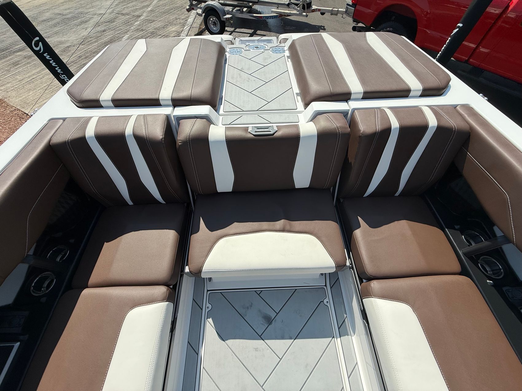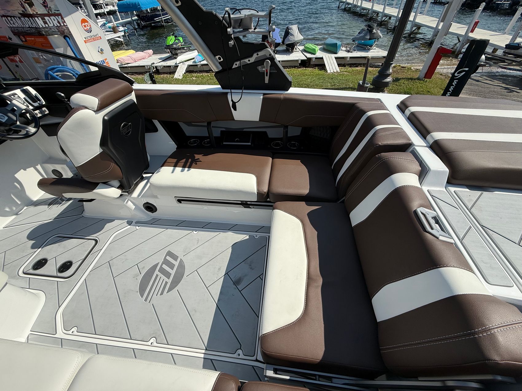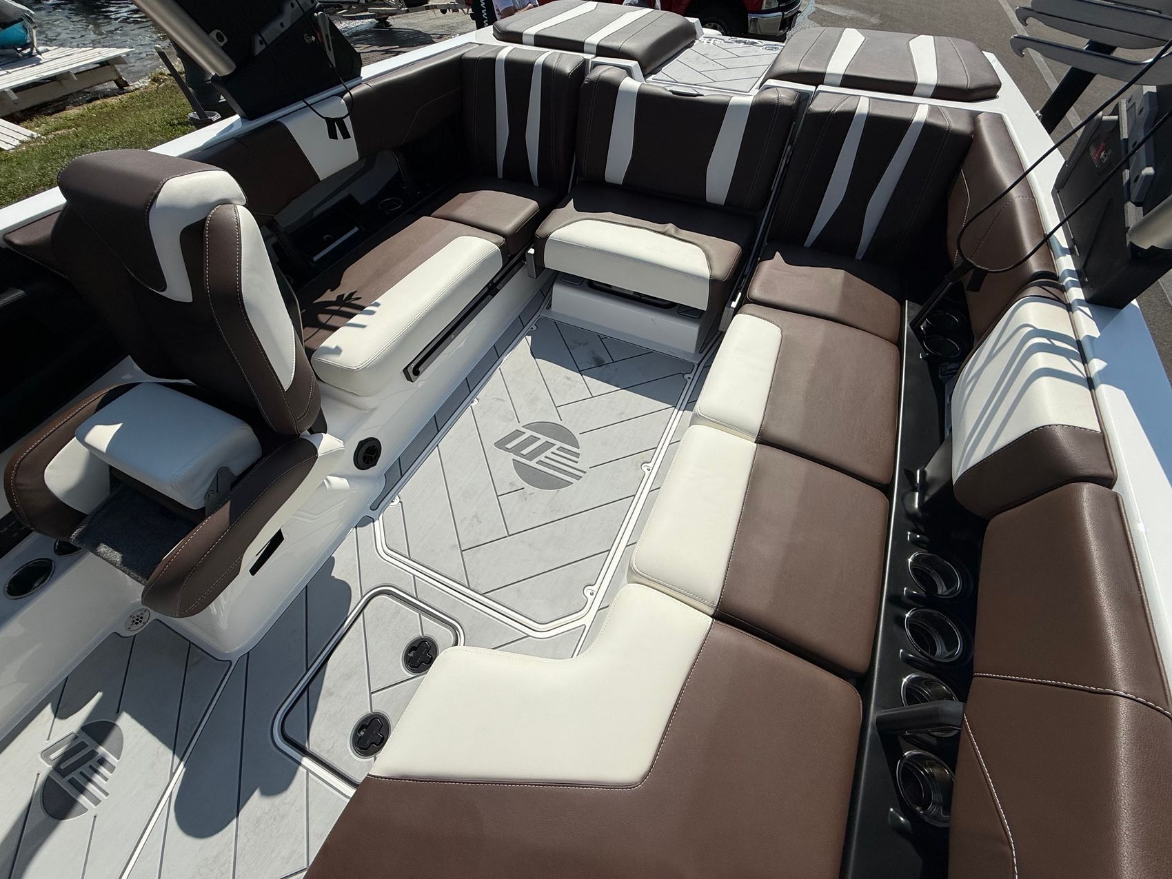 The Malibu 22 LSV is not only built for performance but also for style and luxury. The soft grip flooring with accent color upgrade offers a premium look and feel, elevating the boat's aesthetics. Equipped with a wideview backup camera, you can confidently maneuver in tight spaces and maintain complete awareness of your surroundings.Standard Features