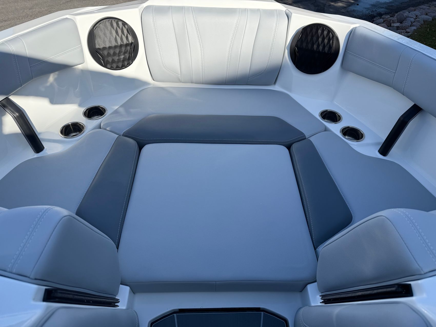Entertainment is top tier, thanks to the LX Sound Pack, Wet Sounds Icon 8 tower speakers, a 12” subwoofer with amp, tower amp, and a transom remote so you’re always in command of the vibe—whether you’re at the helm or hanging out on the swim platform.