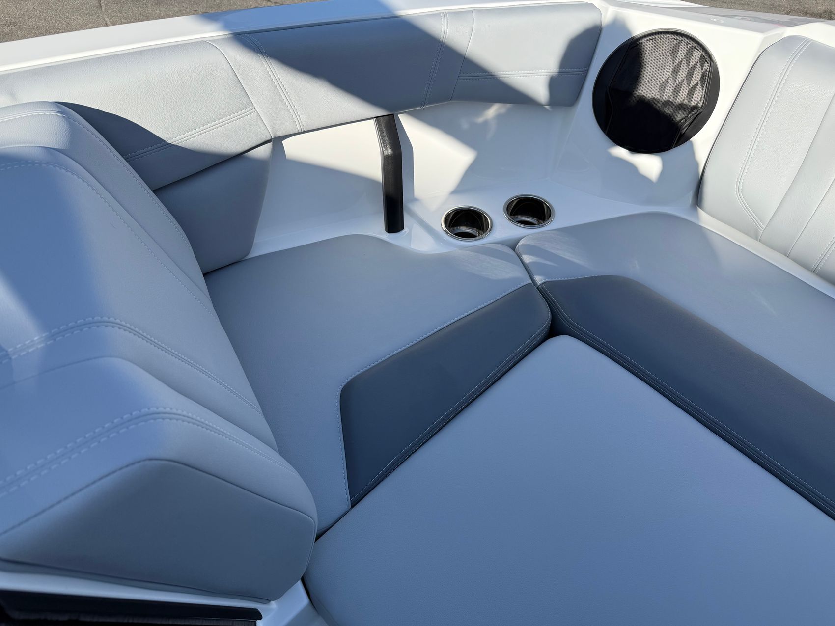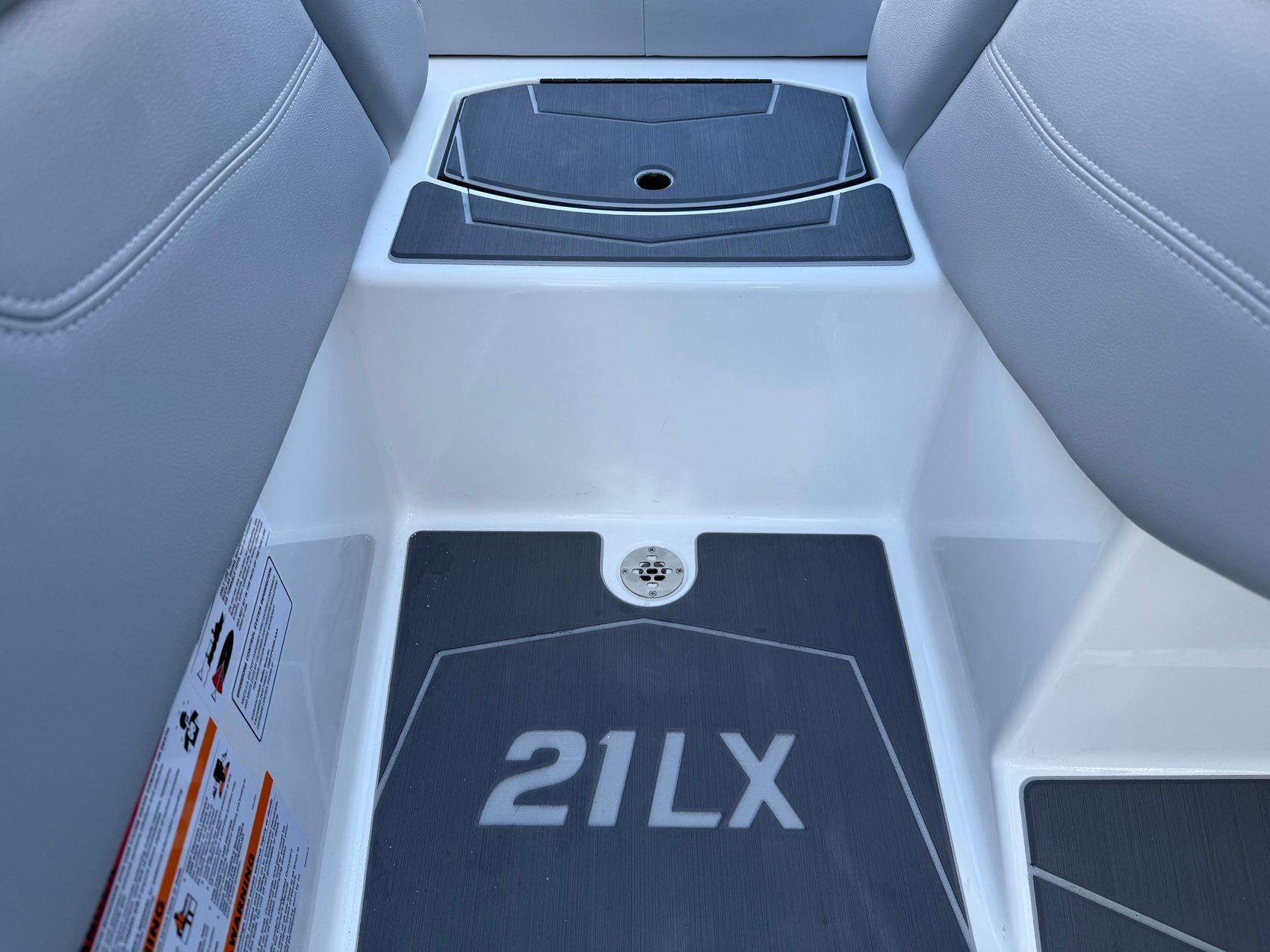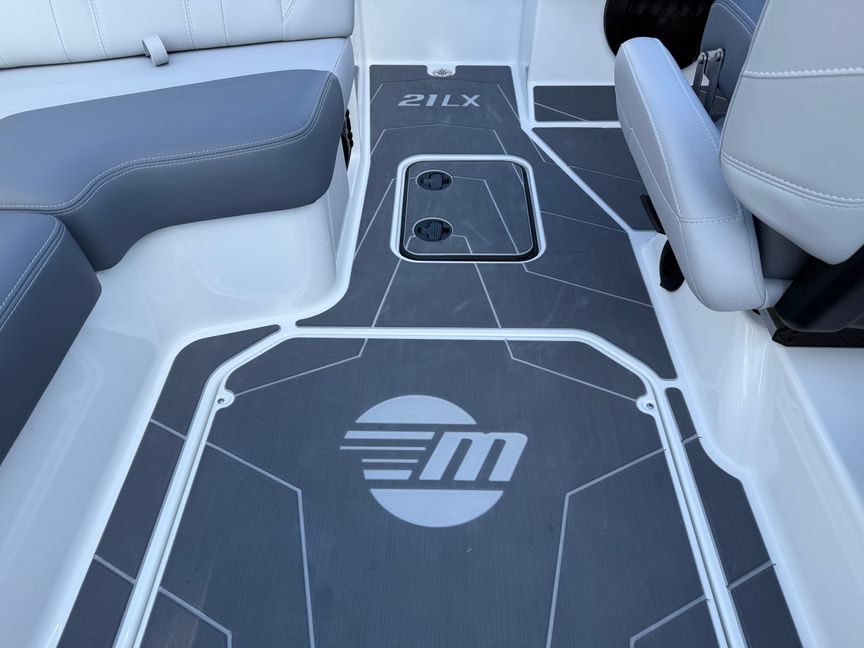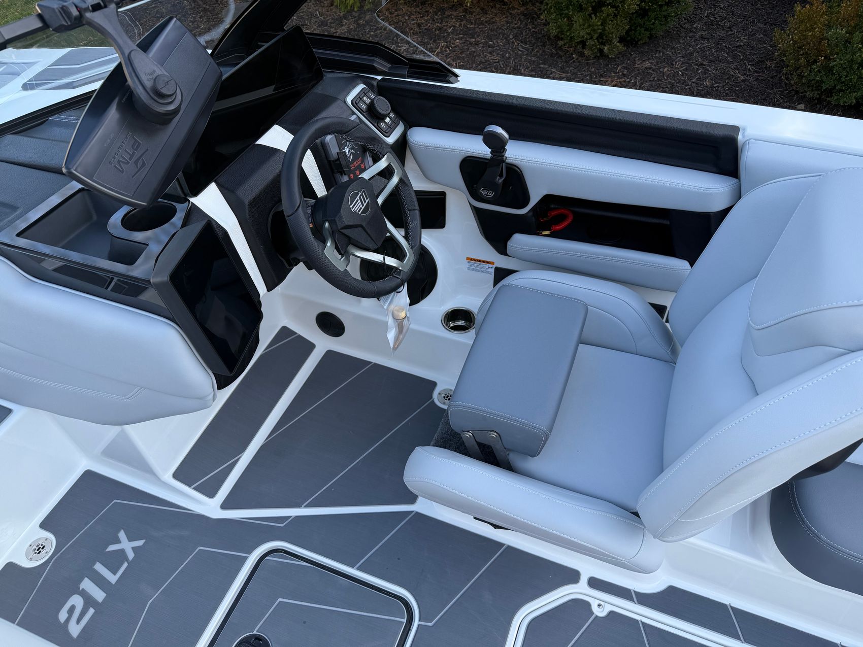 Inside, the 21 LX features Malibu’s newest Cool Light Graphite and Cool Graphite interior package, combining durability, comfort, and a premium aesthetic. Soft-Grip flooring keeps things cool underfoot, while the swivel/slide captain’s chair and Sport Dash with rotary joystick and wireless charging elevate the driving experience.