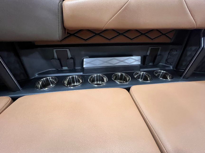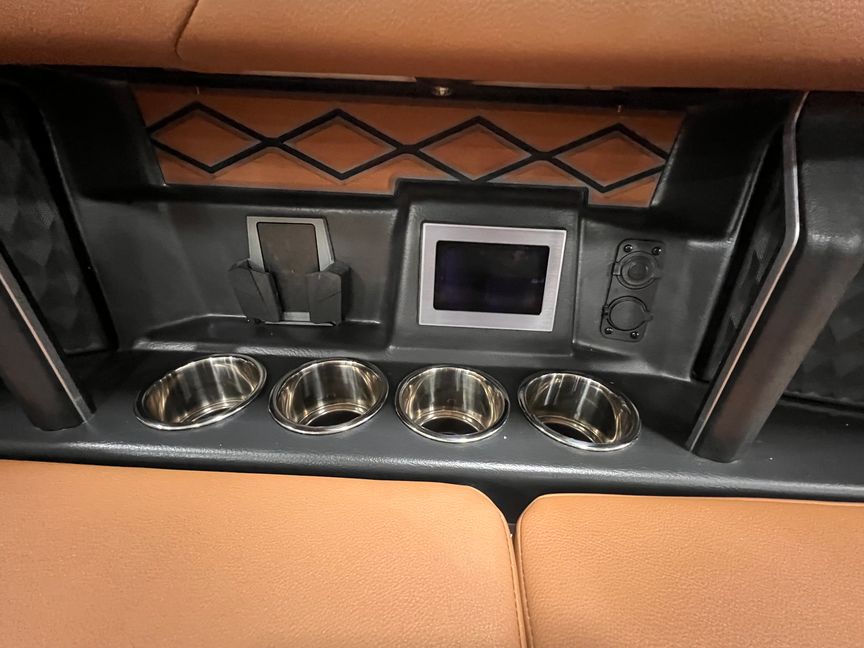 From a technology standpoint, this boat is stacked: Sport Dash with rotary joystick, cabin touchscreen, wireless phone charging throughout the cabin and bow, wide-view backup and bow cameras, docking lights, electric steering, battery charger, and upgraded electrical systems.Standard Features