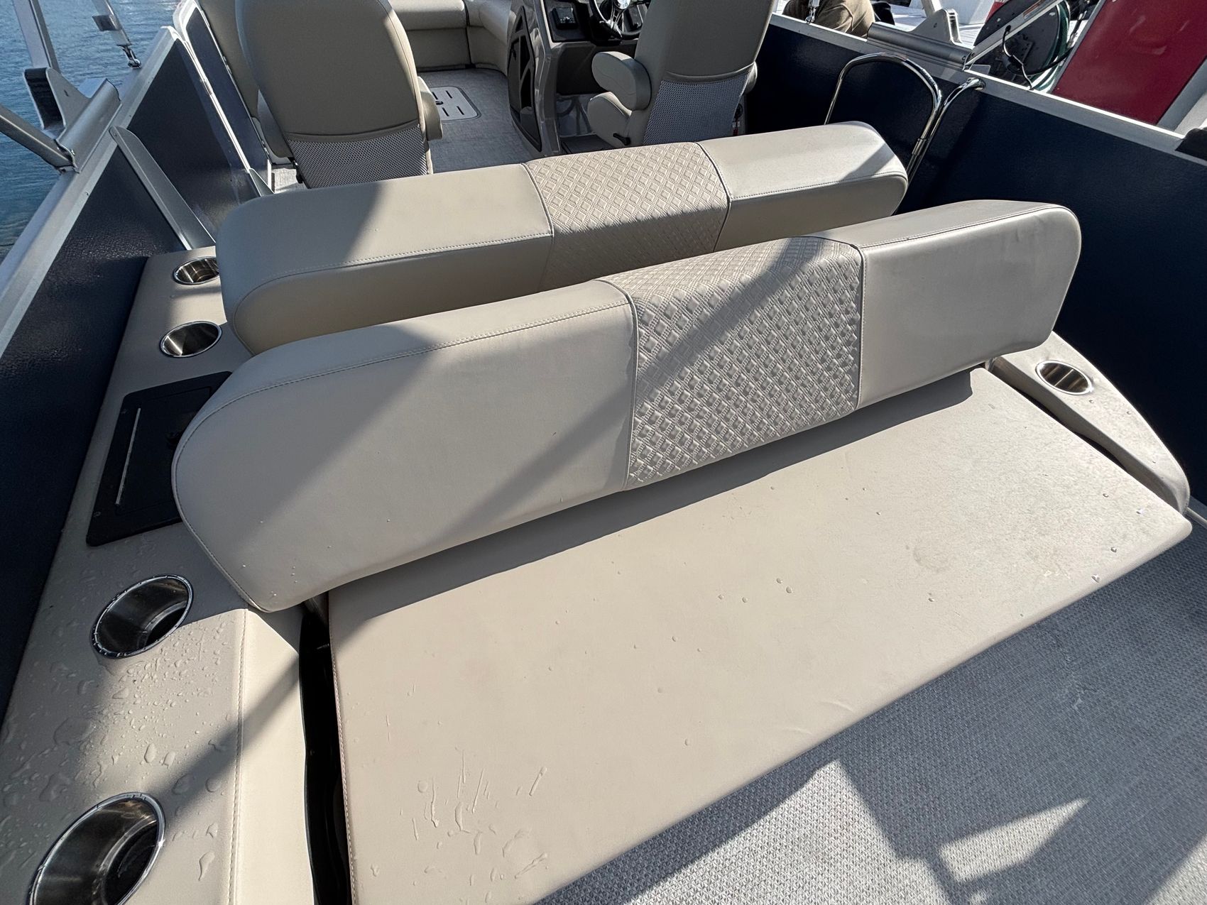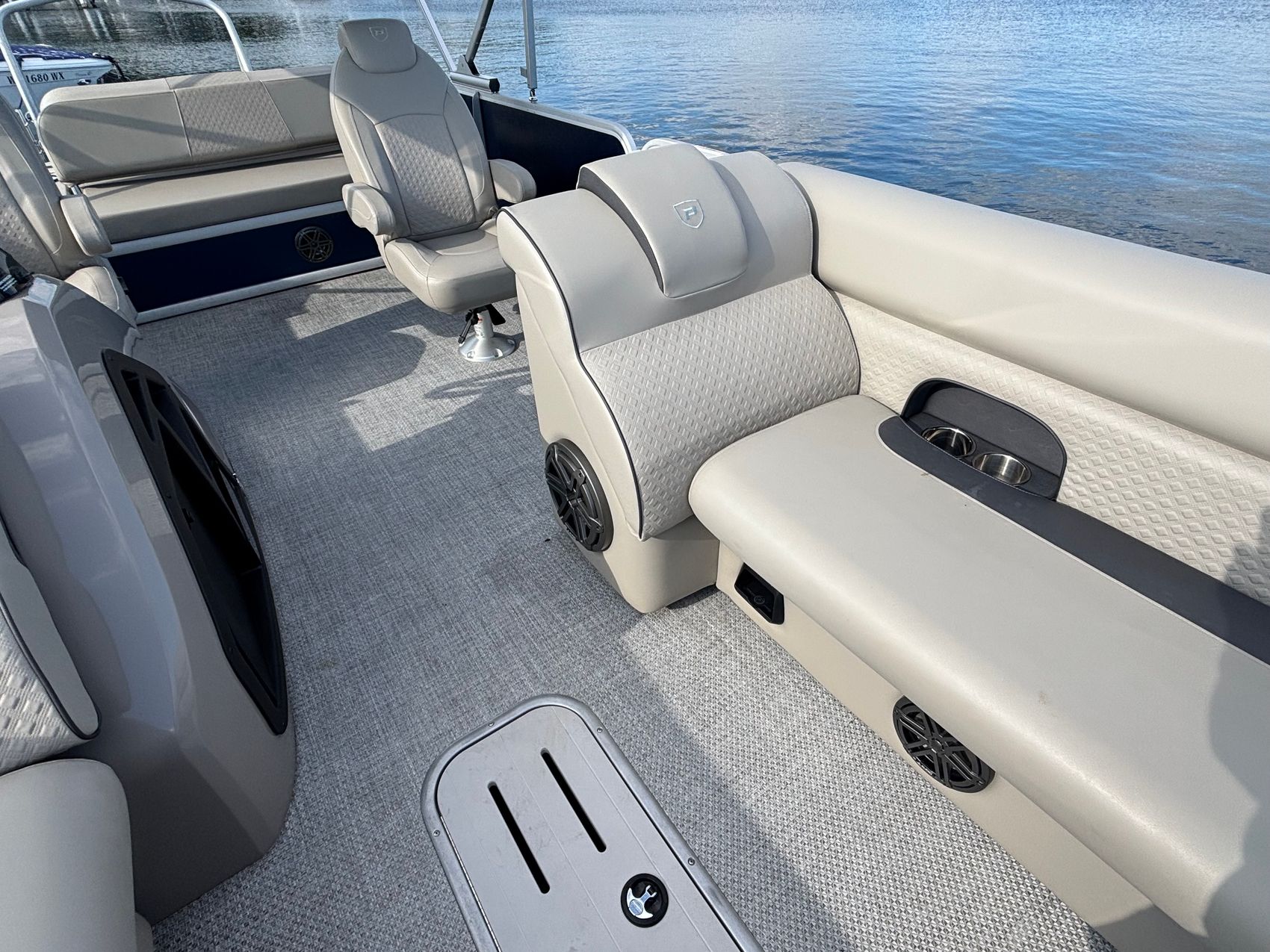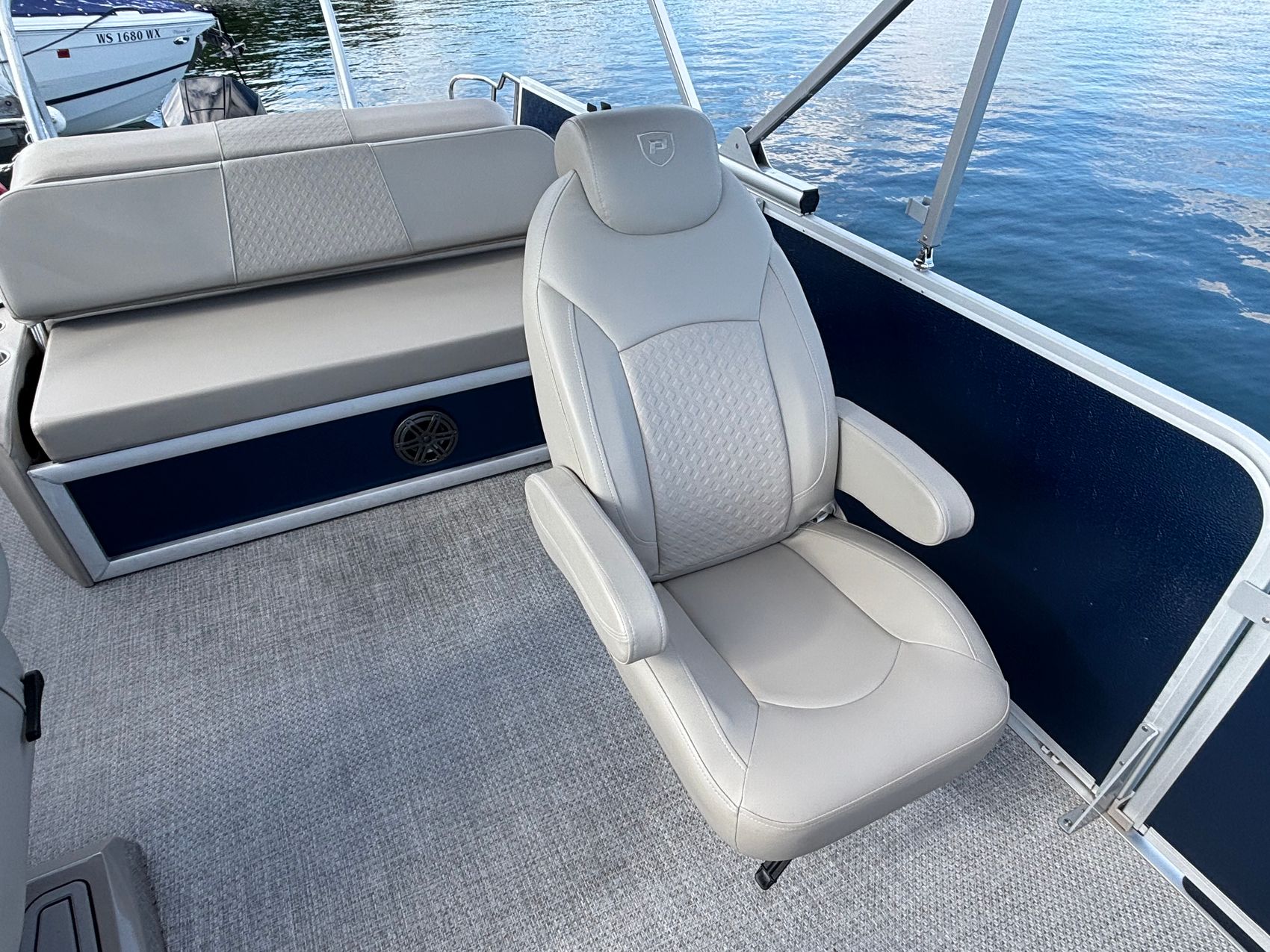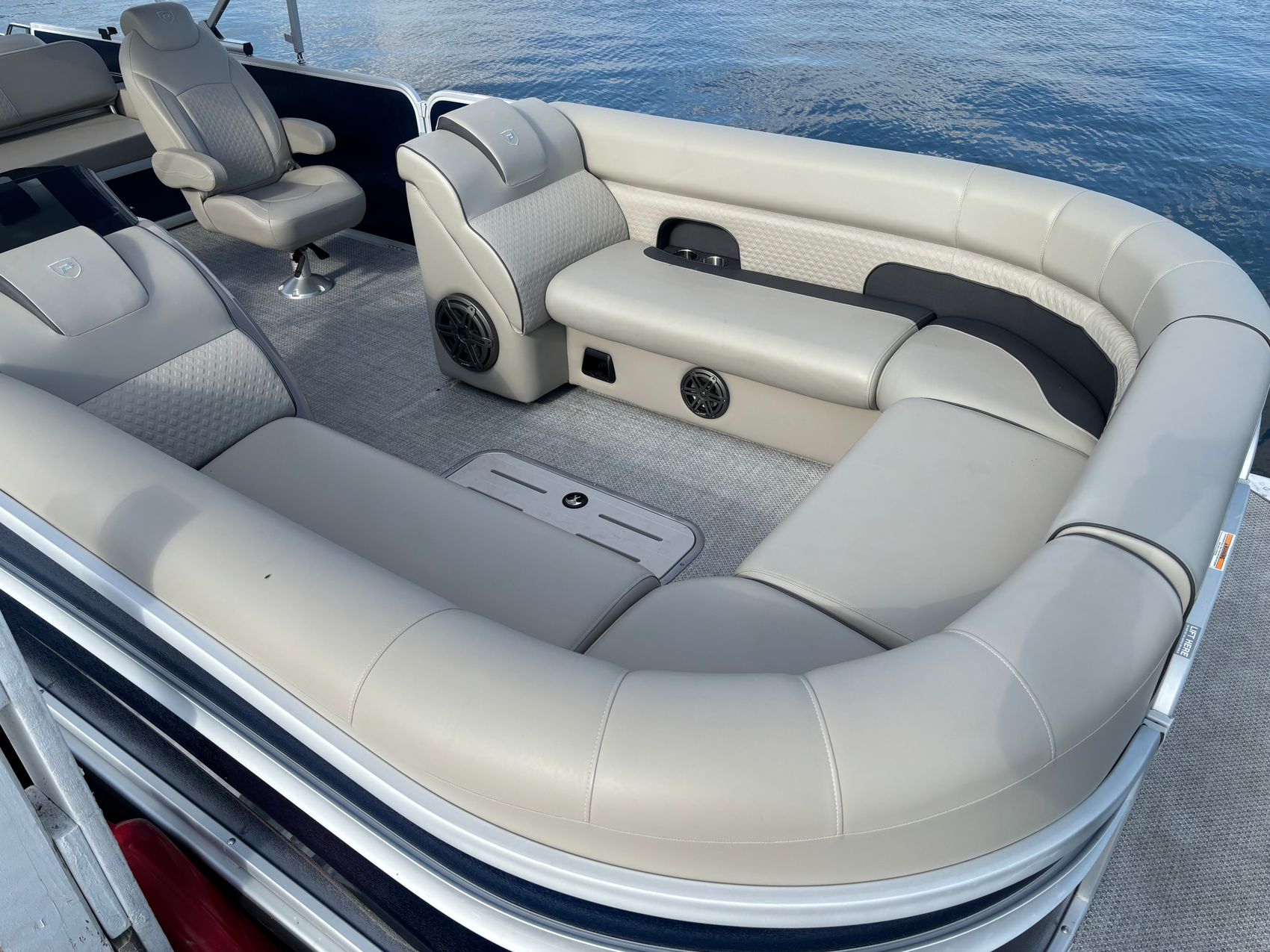 Powered by a Mercury 200L FourStroke DTS 200hp outboard engine, this pontoon is engineered for speed and efficiency, ensuring a smooth and powerful ride every time. And with power steering, you'll have precise control at your fingertips.