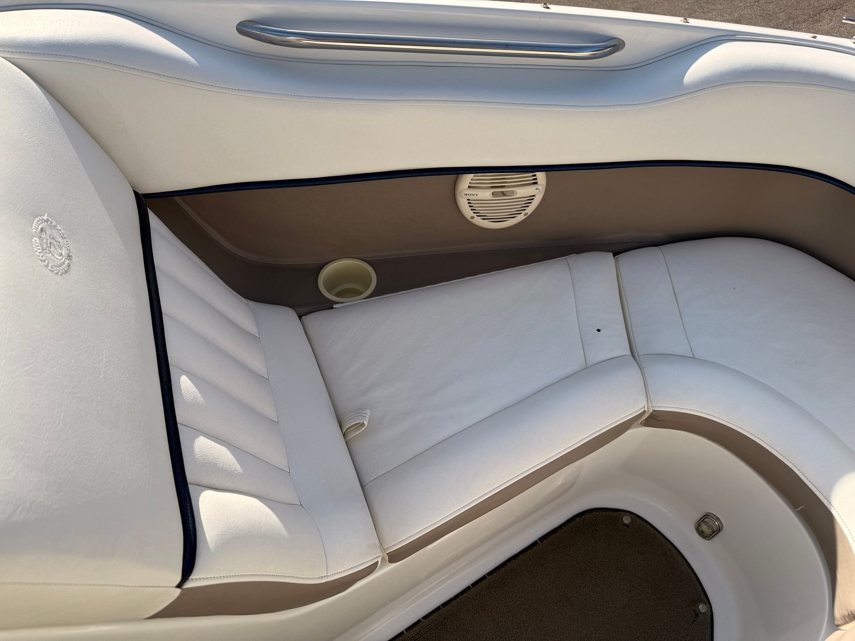 Finished in a beautiful white and navy exterior, this Cobalt looks every bit as elegant as it performs. The deep-V hull ensures a soft, confident ride even in choppy water, while Cobalt’s renowned build quality gives you that solid, quiet feel that owners love.