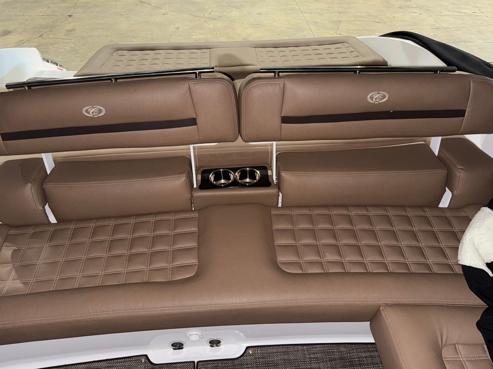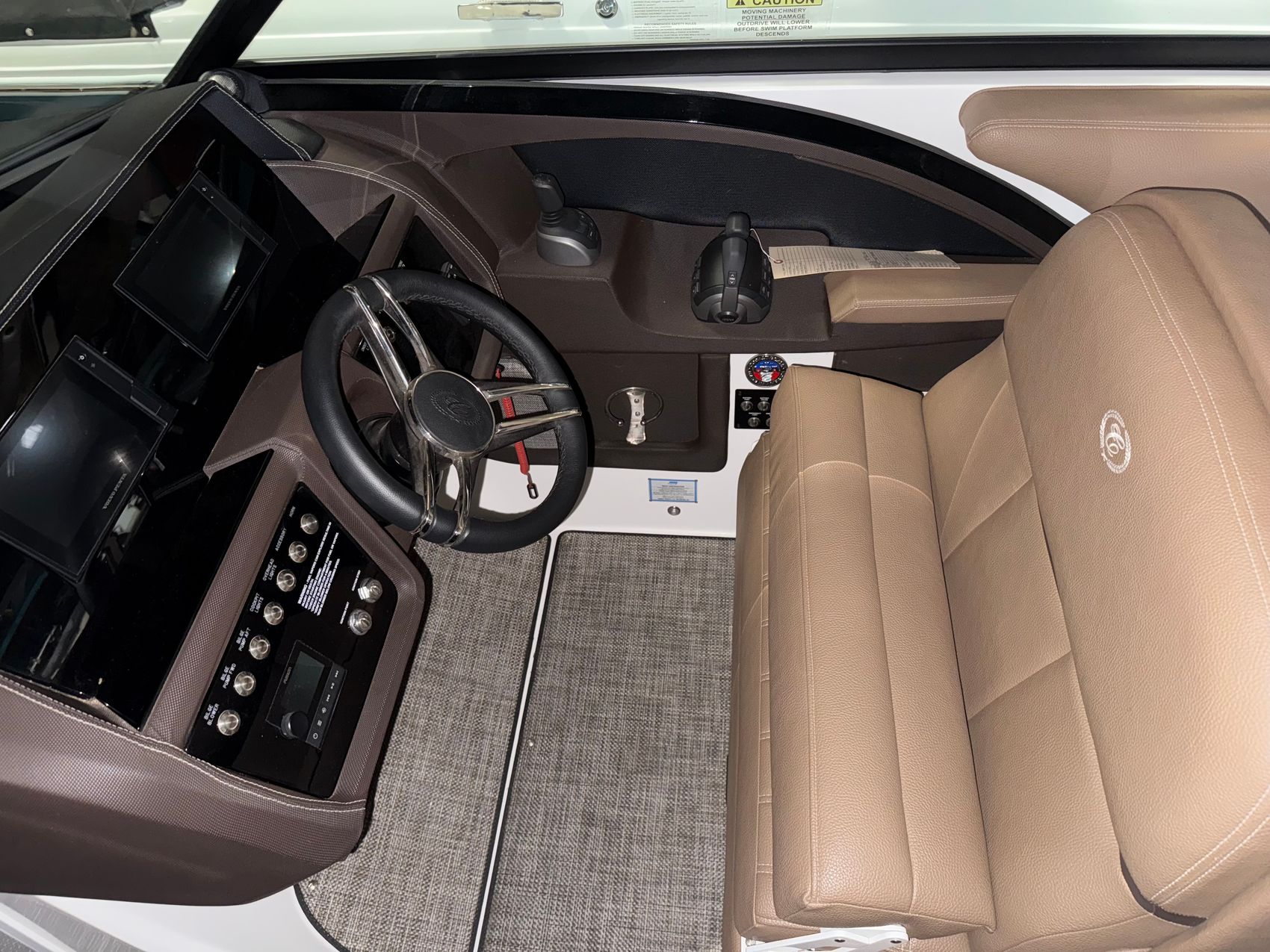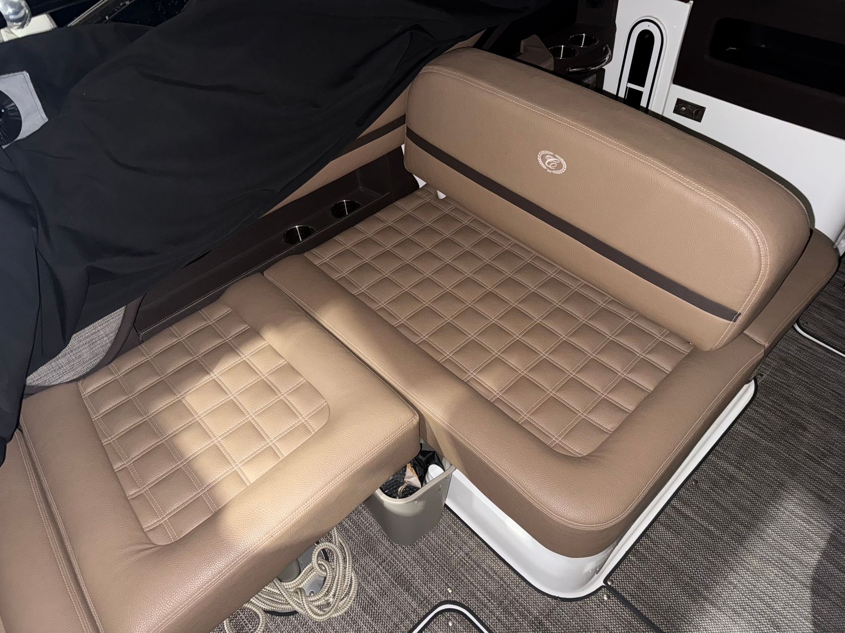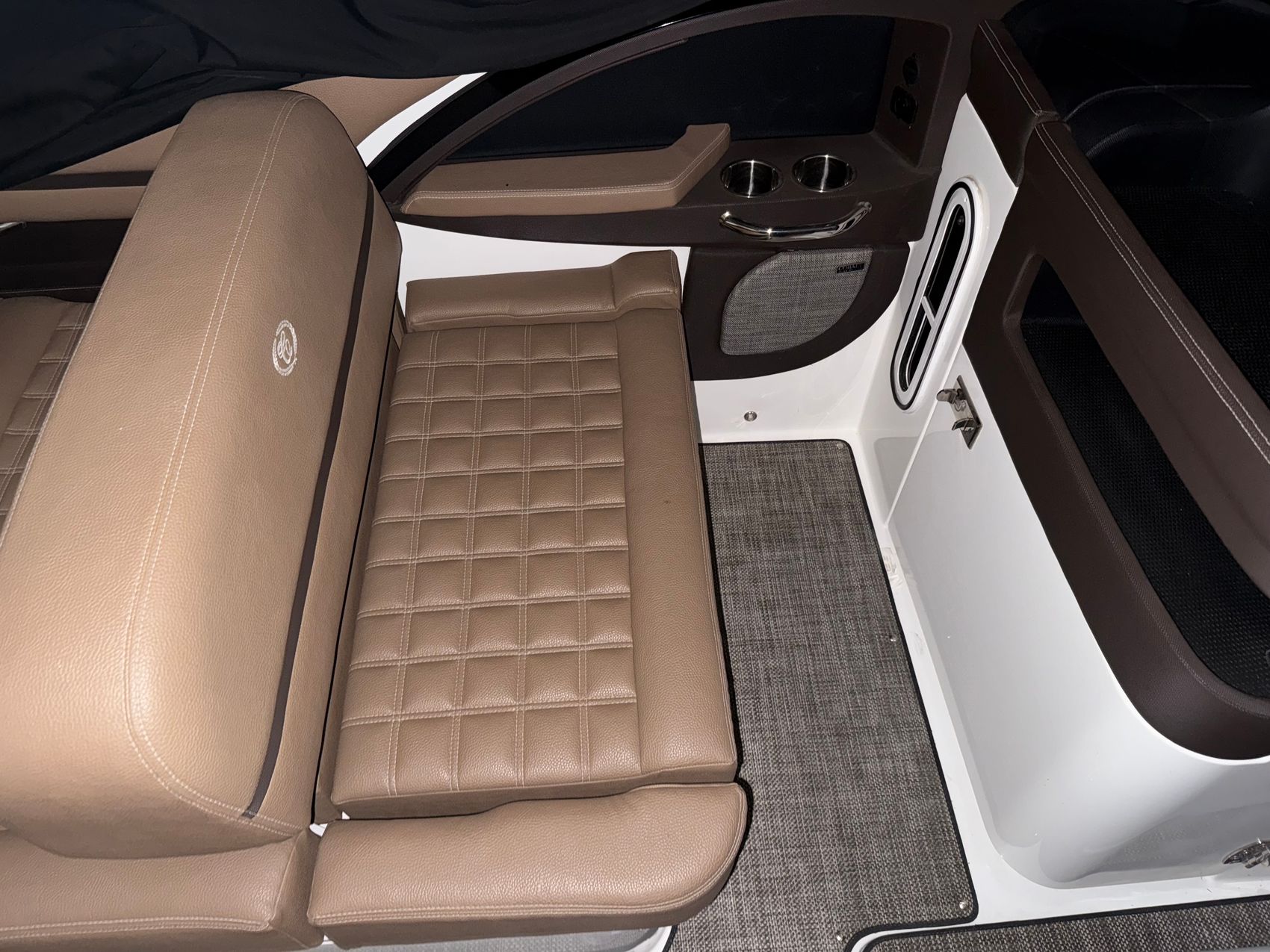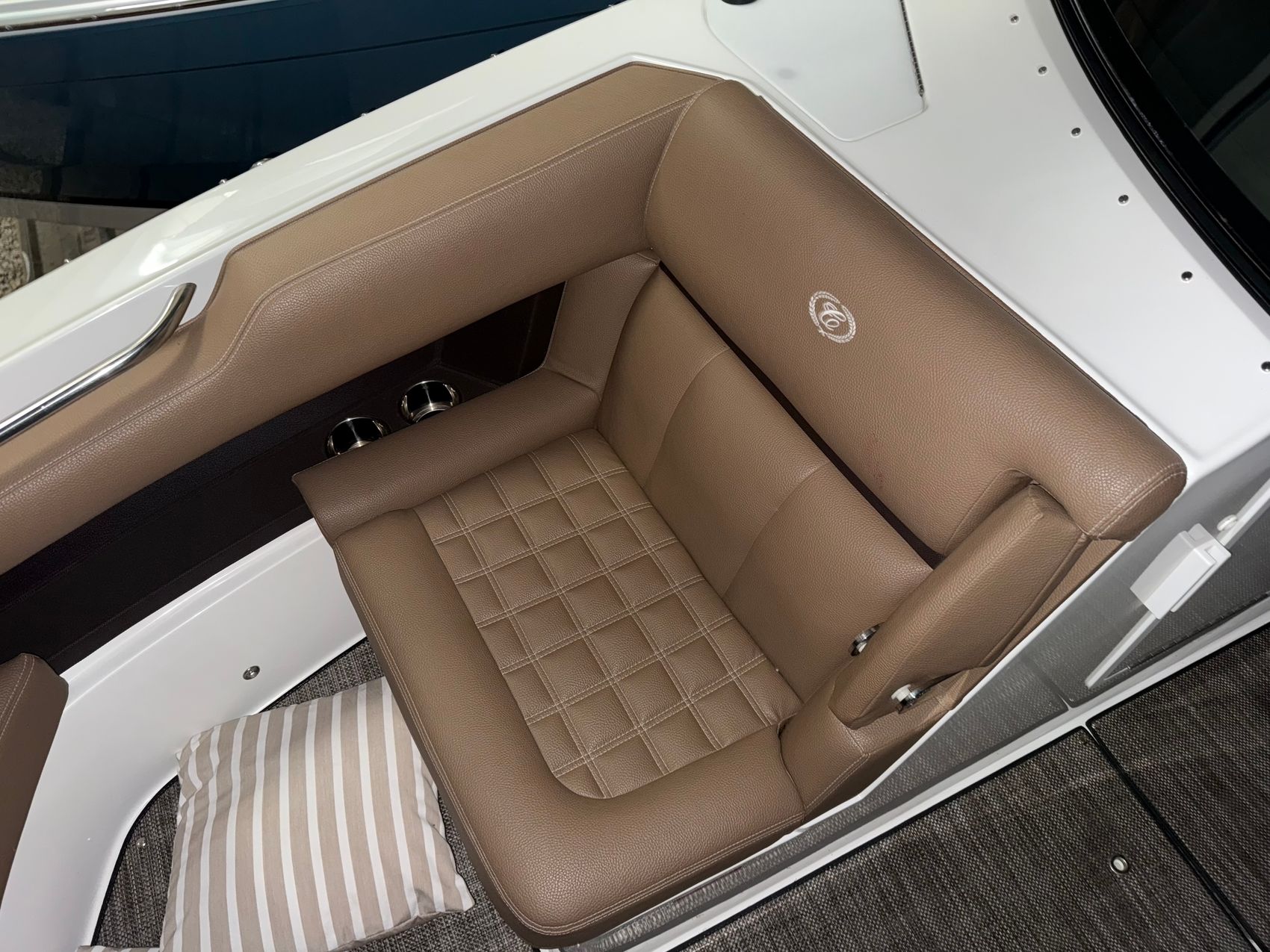 Step aboard and you’ll find a cockpit designed for comfort and connection. The sea grass floor covering feels great underfoot, and the weighted throw pillows add an extra touch of luxury. A bow center cushion insert expands the forward seating into a full lounging area, perfect for entertaining family and friends.