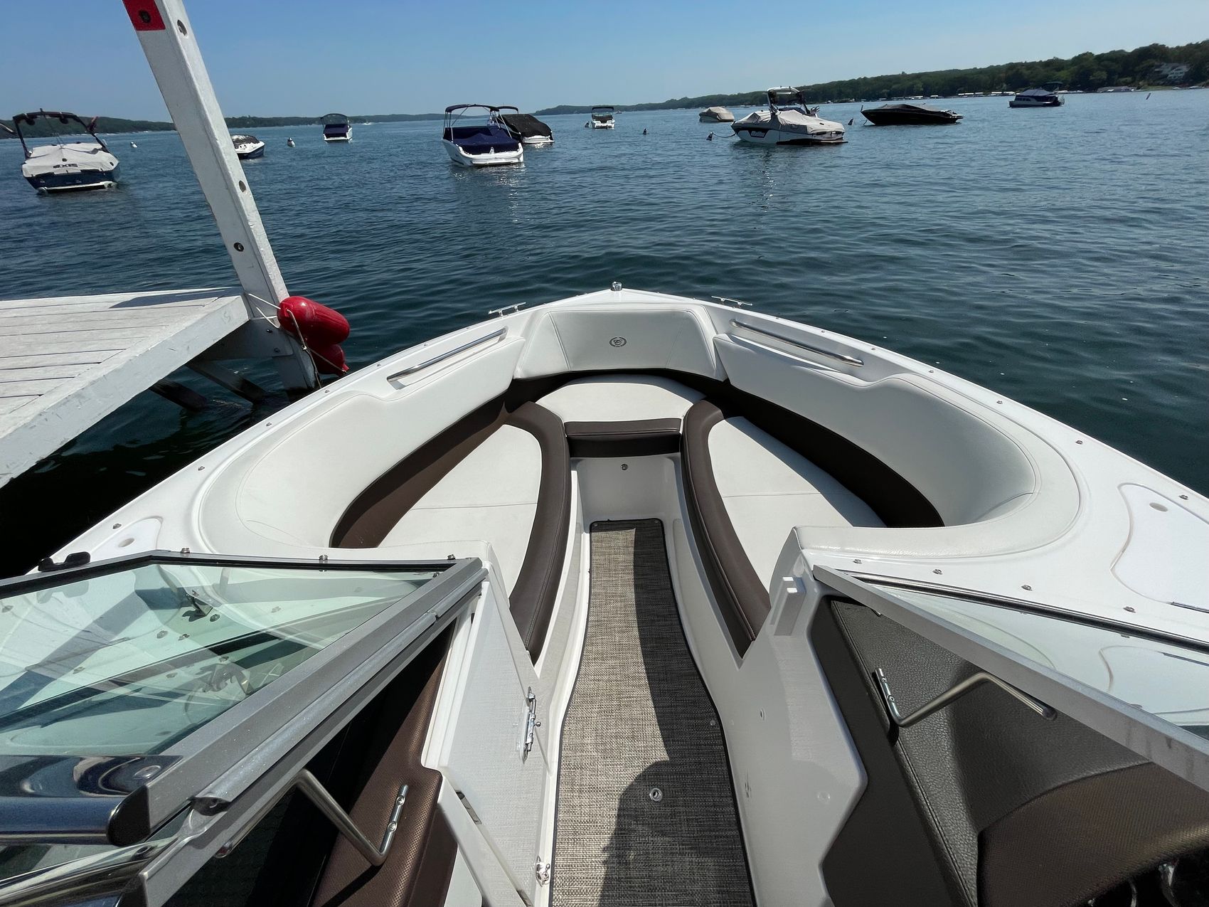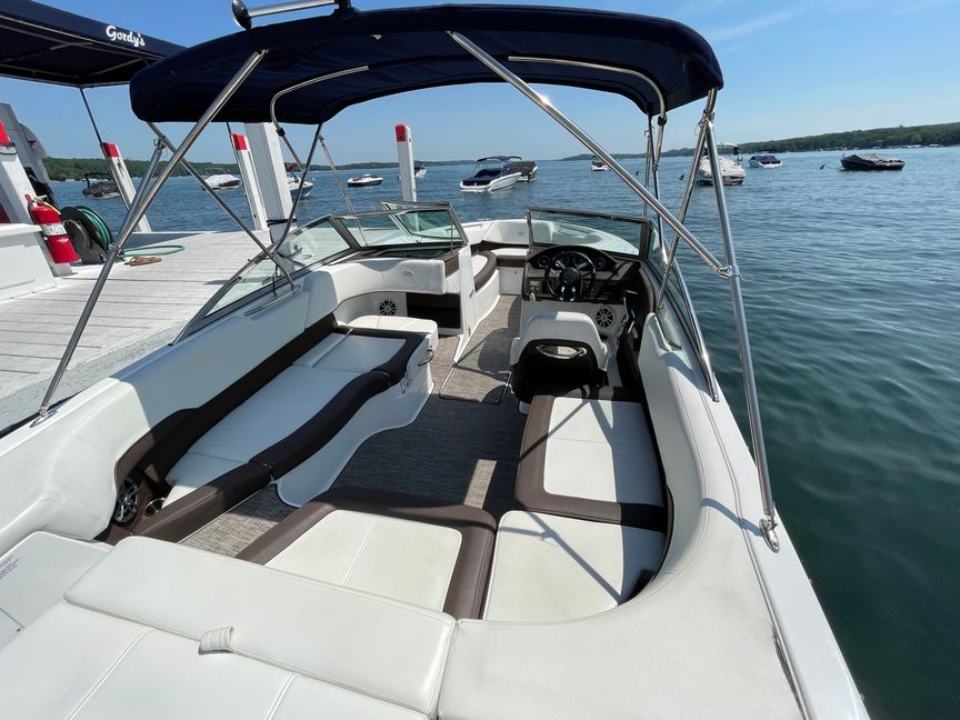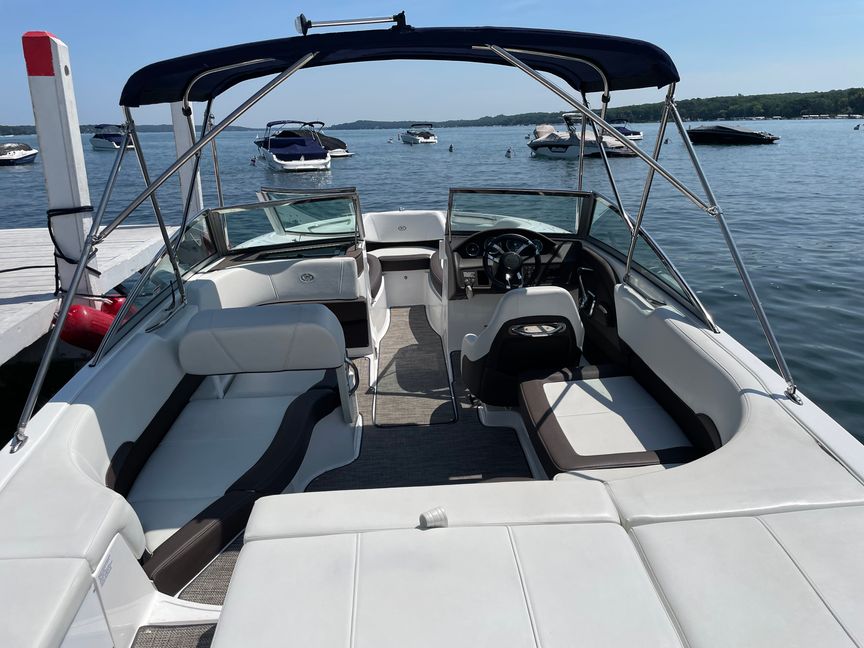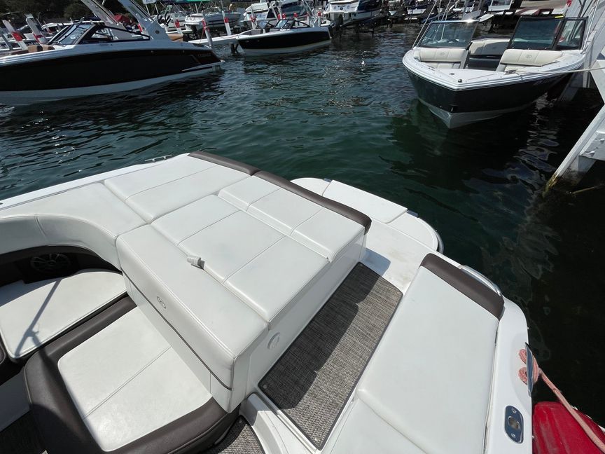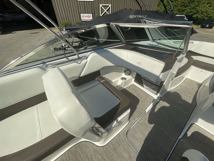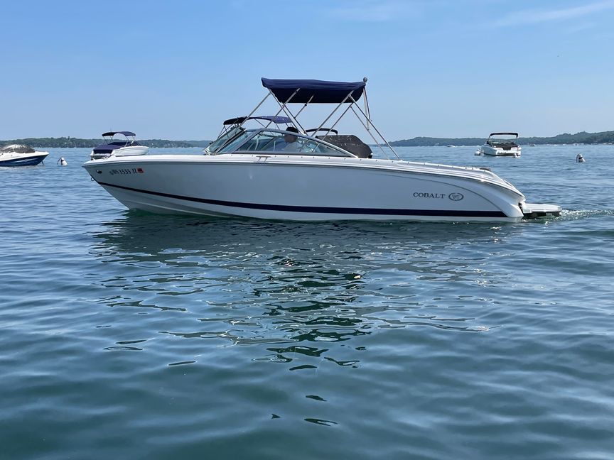 Discover the ultimate boating experience with this stunning 2023 Cobalt 220S, a perfect blend of style, comfort, and power. Featuring a robust V6 Volvo 280hp engine and only 351 hours of use, this boat is ready for your next adventure on the water. Key Features: V6 Volvo 280hp engine – Enjoy smooth power and responsiveness for all your boating activities, from leisurely cruises to thrilling watersports. 351 hours – Well-cared-for and ready for many more memorable outings. Striking white exterior with navy boot stripe – Timeless elegance that makes a statement on the water. Matching bimini top – Provides shade and comfort for those sunny days out. Bow and cockpit covers – Keep your boat protected and looking great when not in use. Luxurious summit/cocoa interior – Offers comfort and sophistication for you and your guests. Upgrades include: Flagpole with flag – Show off your nautical pride in style. Flip-down swim step – Easy access to the water for swimming and fun activities. Stainless steel docking lights – Enhance visibility and safety when approaching docks at night. Seagrass floor covering – Durable and stylish, providing a premium touch to your interior. Dual battery switch – Ensures reliable power management for all your onboard needs. This Cobalt 220S is perfect for families and friends seeking quality time on the water, combining luxury and performance in one exceptional package.Standard Features