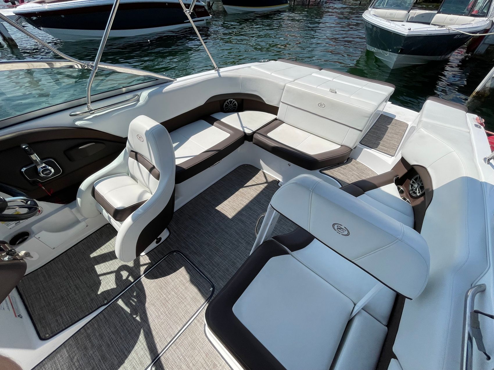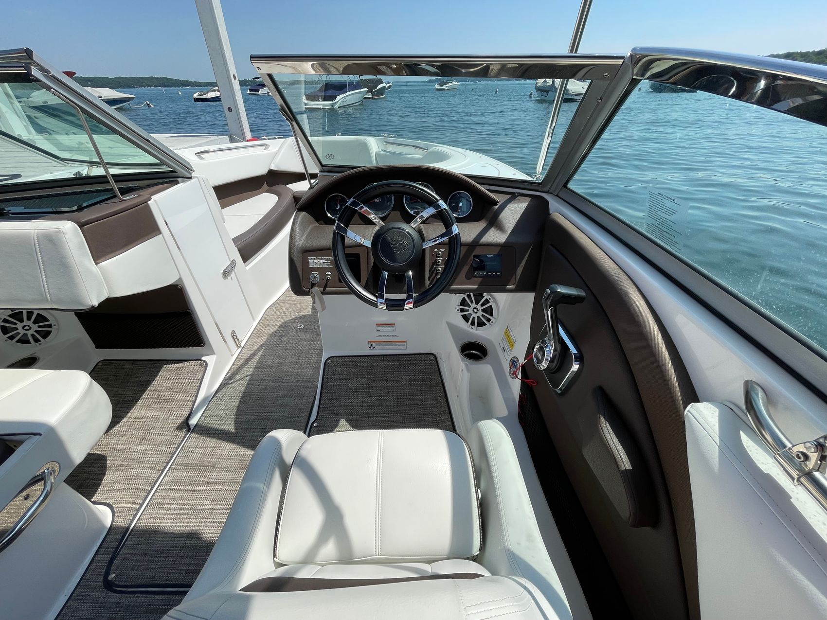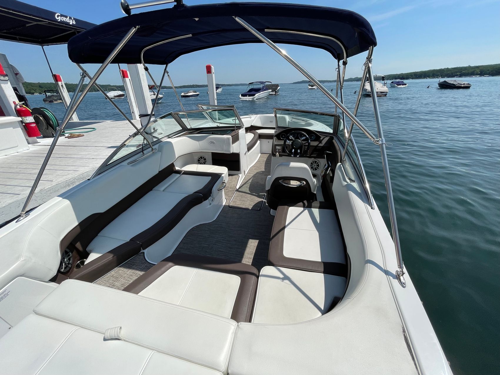 Discover the ultimate boating experience with this stunning 2023 Cobalt 220S, a perfect blend of style, comfort, and power. Featuring a robust V6 Volvo 280hp engine and only 351 hours of use, this boat is ready for your next adventure on the water. Key Features: V6 Volvo 280hp engine – Enjoy smooth power and responsiveness for all your boating activities, from leisurely cruises to thrilling watersports. 351 hours – Well-cared-for and ready for many more memorable outings. Striking white exterior with navy boot stripe – Timeless elegance that makes a statement on the water. Matching bimini top – Provides shade and comfort for those sunny days out. Bow and cockpit covers – Keep your boat protected and looking great when not in use. Luxurious summit/cocoa interior – Offers comfort and sophistication for you and your guests. Upgrades include: Flagpole with flag – Show off your nautical pride in style. Flip-down swim step – Easy access to the water for swimming and fun activities. Stainless steel docking lights – Enhance visibility and safety when approaching docks at night. Seagrass floor covering – Durable and stylish, providing a premium touch to your interior. Dual battery switch – Ensures reliable power management for all your onboard needs. This Cobalt 220S is perfect for families and friends seeking quality time on the water, combining luxury and performance in one exceptional package.Standard Features