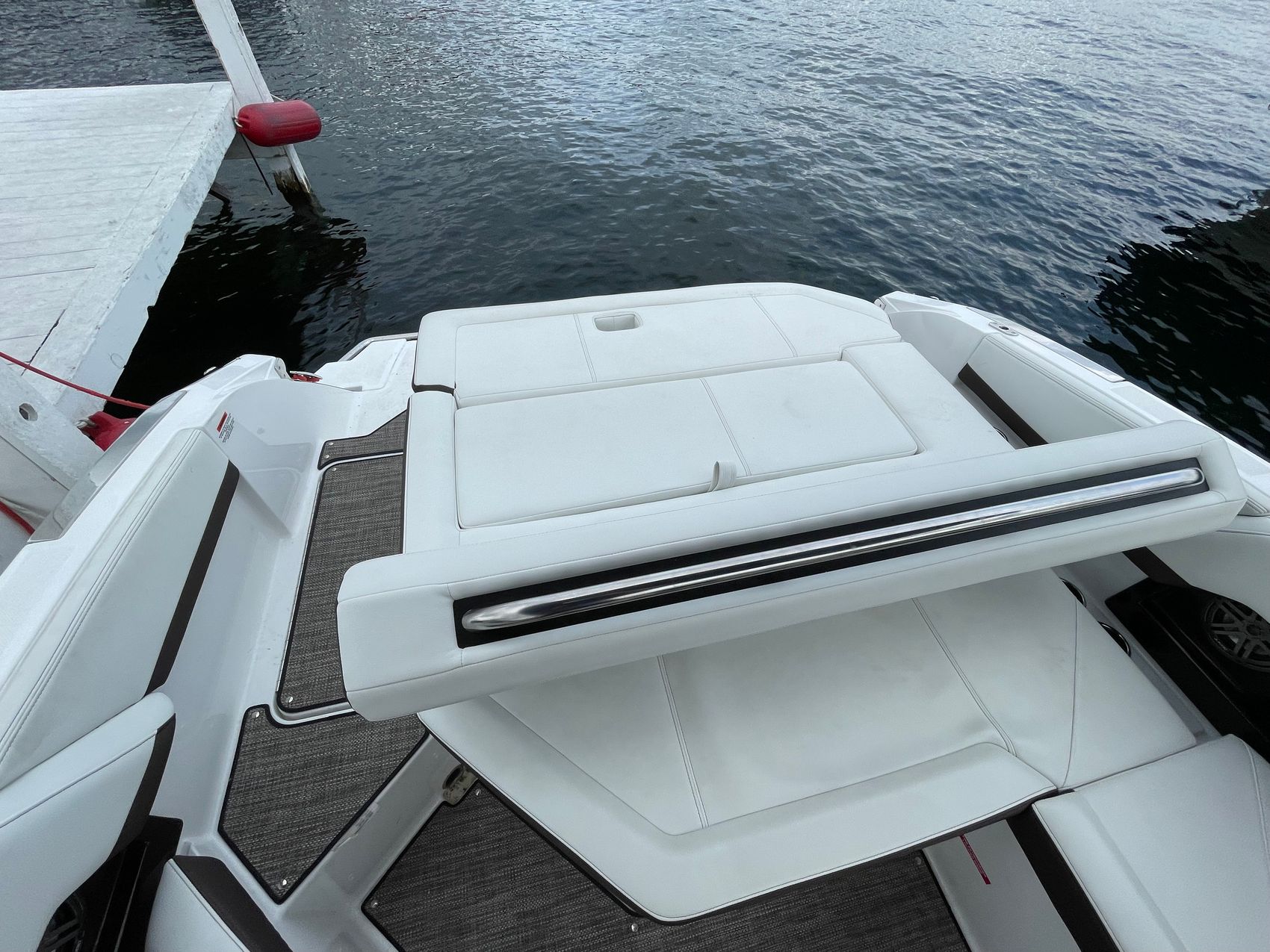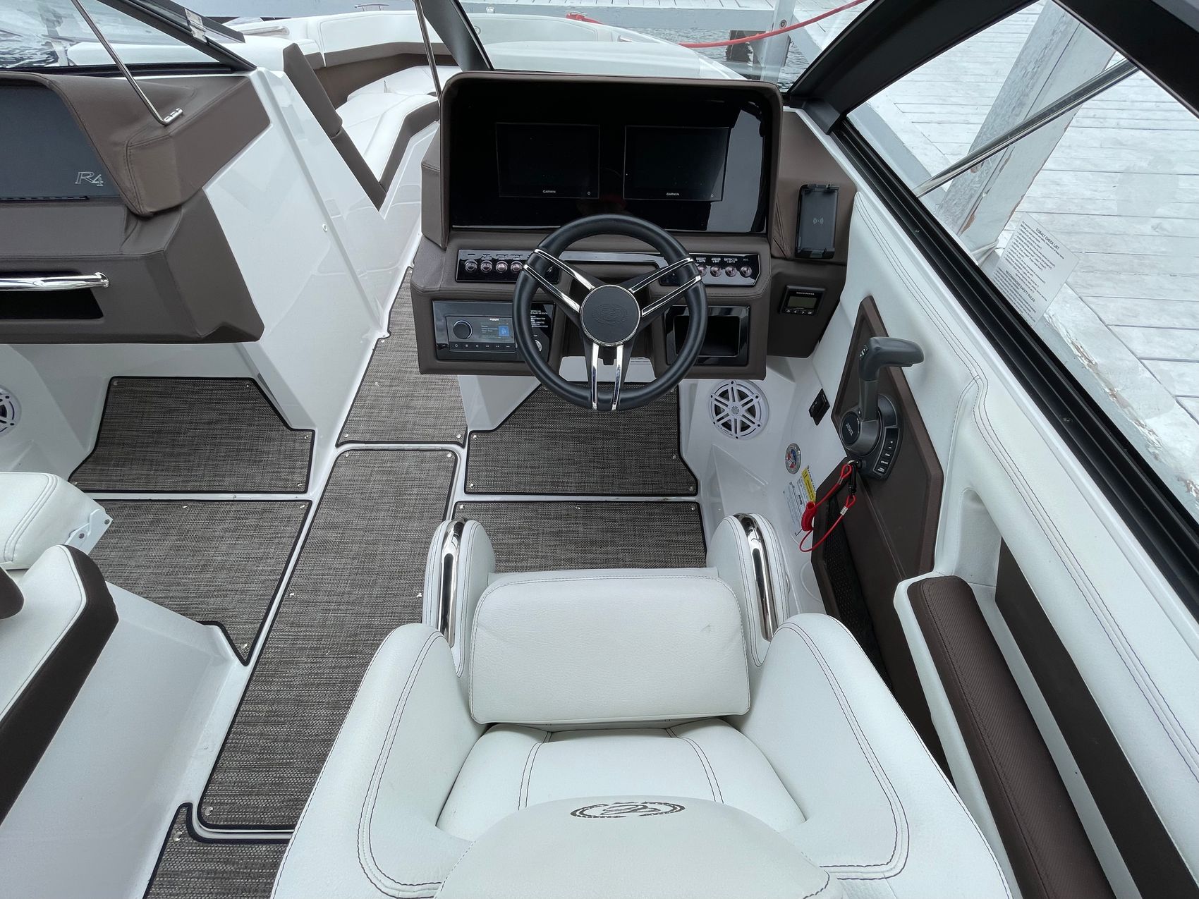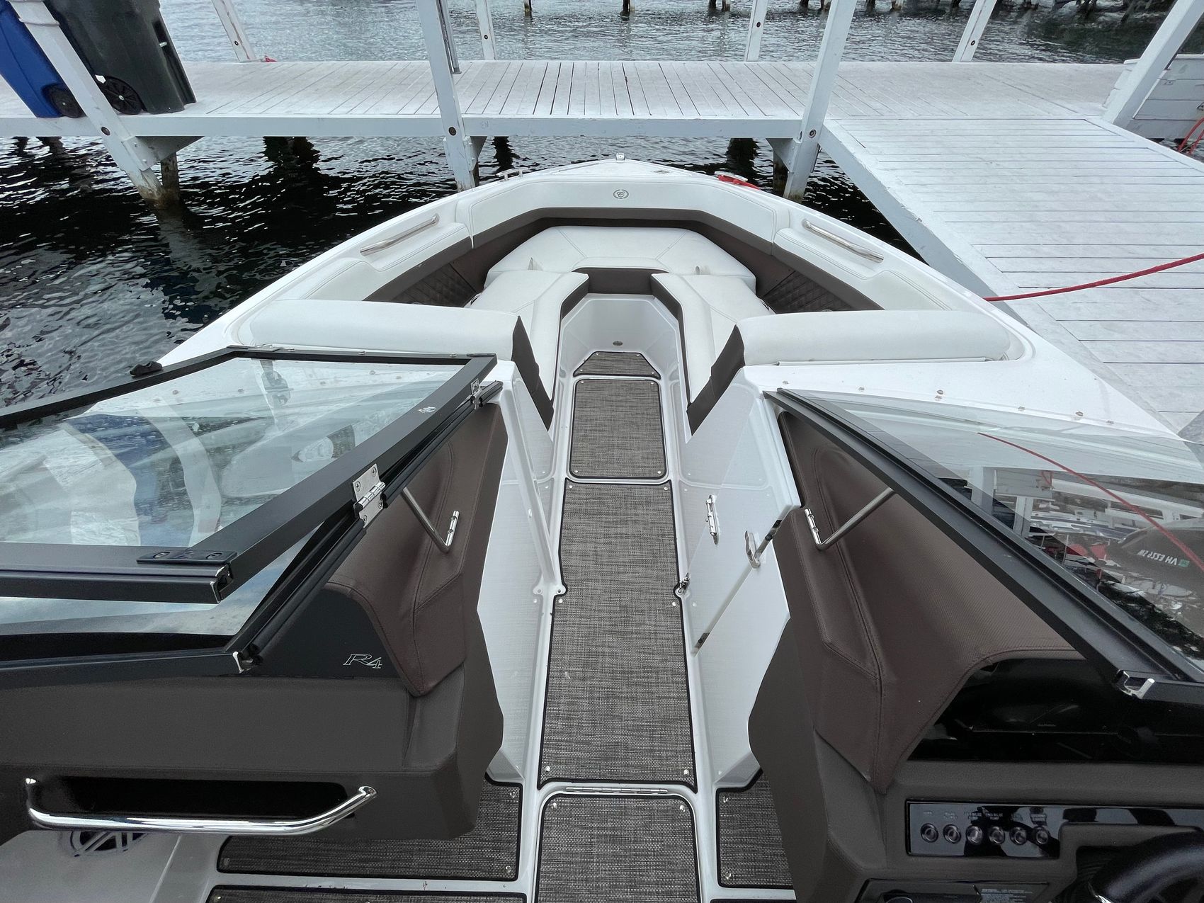 This R4 is built for both relaxation and adventure. The aft-facing rumble seat offers the perfect spot to lounge by the water’s edge, while the premium Sea Grass floor covering adds a refined touch underfoot. Stay shaded and stylish with the premium Bimini, and enjoy easy anchoring with the windlass all-chain anchor system.