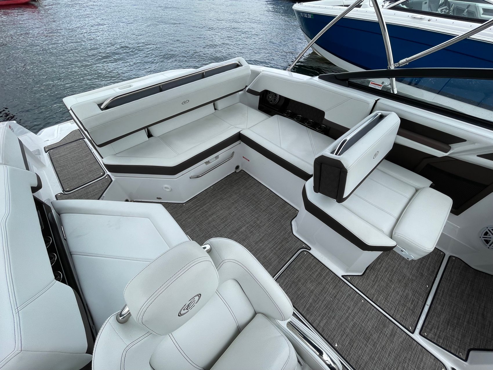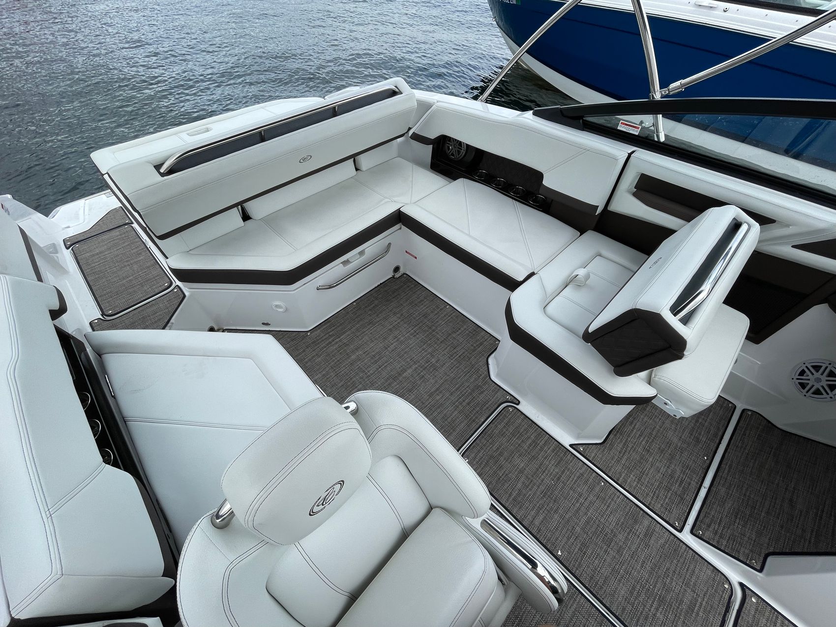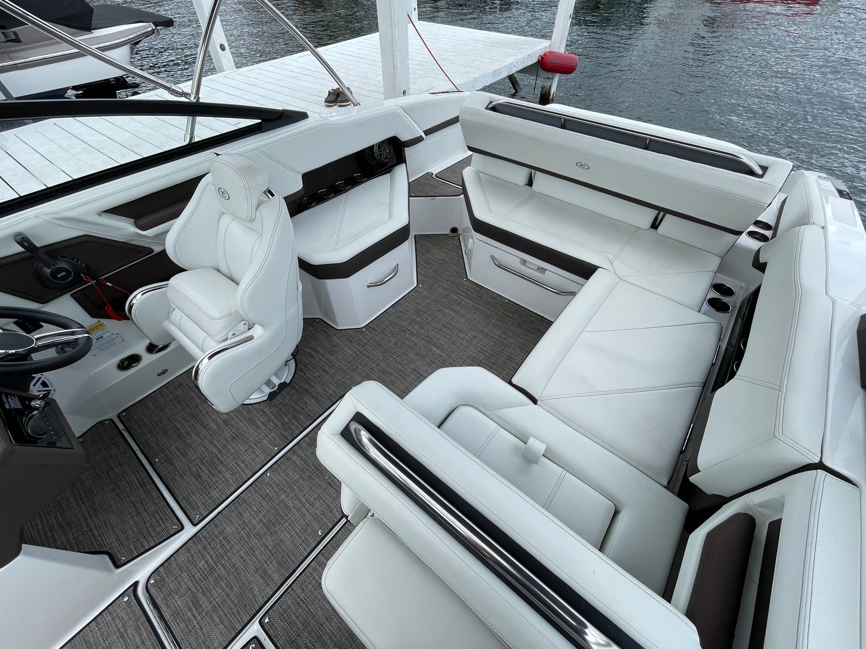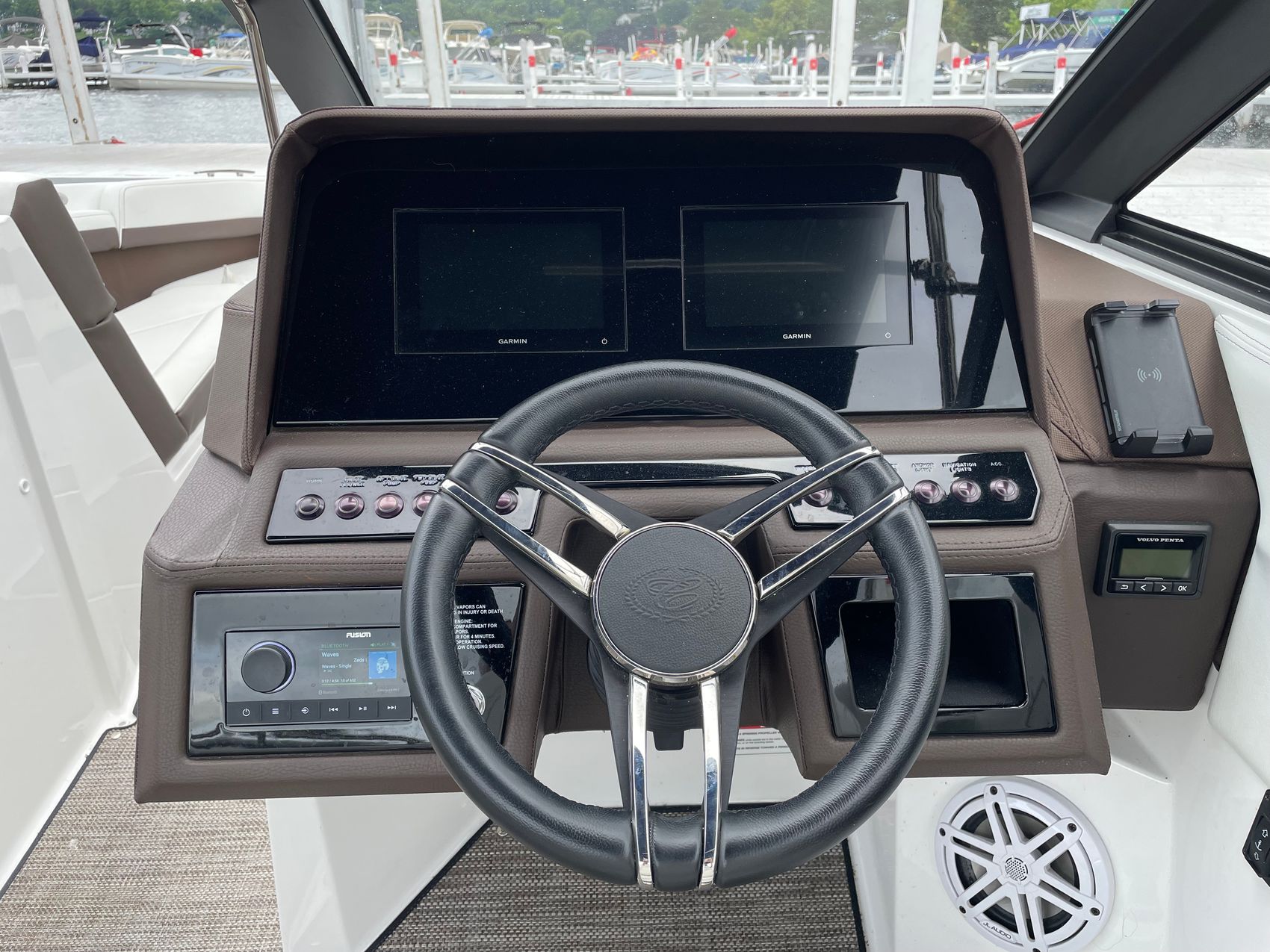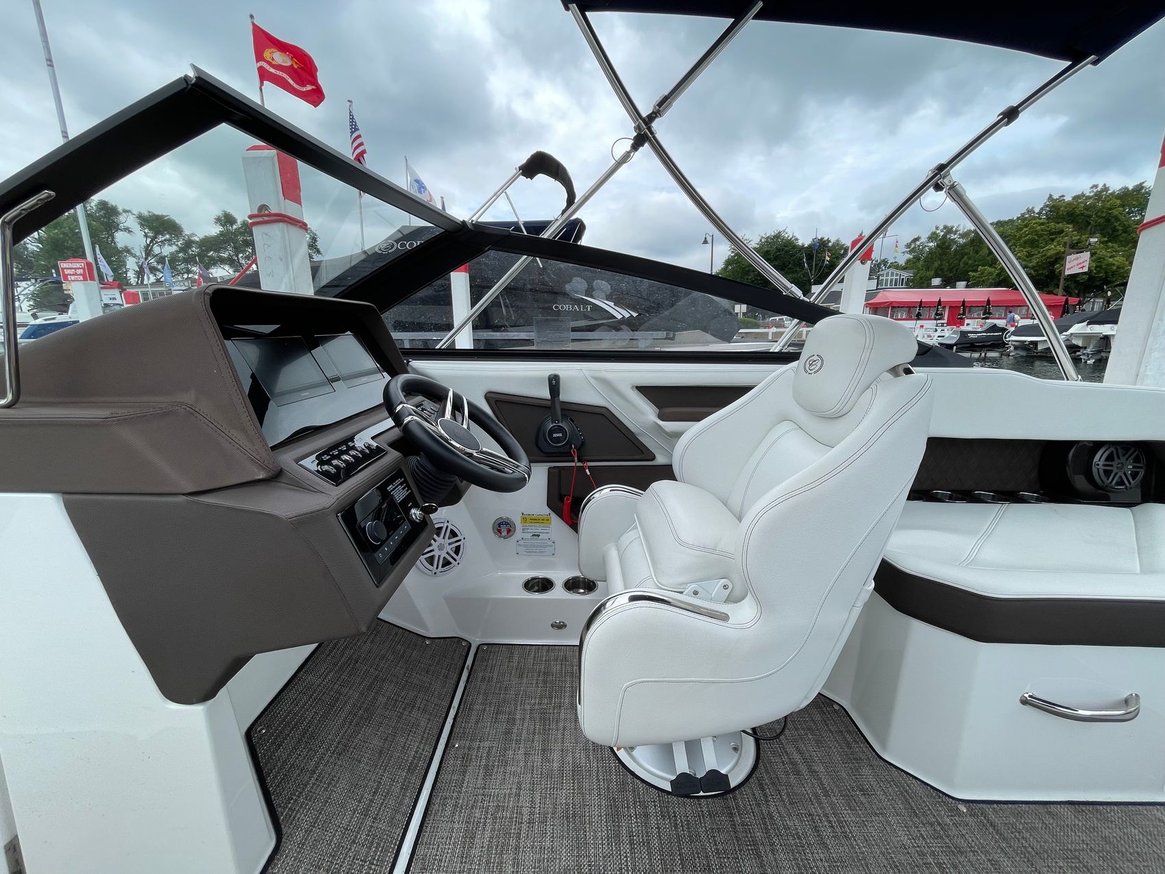 From the moment you step aboard, you’ll notice the attention to detail that defines Cobalt. The Navy and White classic exterior turns heads at the dock, while the Summit and Cocoa interior wraps you in upscale comfort. Every stitch, surface, and curve reflects the brand’s legendary commitment to excellence.
