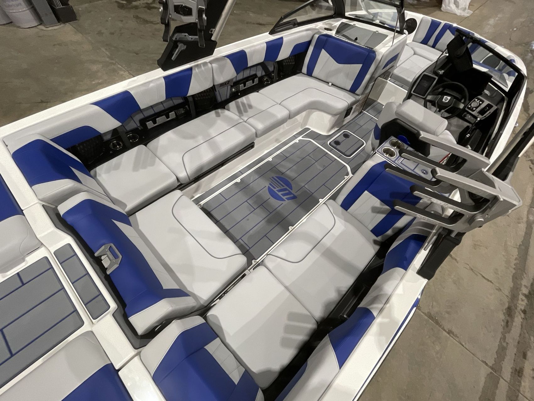 2023 Malibu 24 MXZ - the ultimate wake surfing machine! With its sleek and beautiful Dark Blue & White exterior, this boat is sure to turn heads on any lake. And that's just the beginning! This boat is equipped with the powerful M6Di engine, providing you with all the speed and agility you need to carve through the water like a pro. Plus, the tandem axle trailer makes it easy to transport your new Malibu to any lake or river you desire. But it's not just about speed and performance - this boat is also loaded with premium features that will make every moment on the water a true pleasure. Docking lights ensure that you can easily navigate in and out of even the trickiest spots, while the MXZ sound system pack with subwoofer and Wet Sounds Speakers delivers crystal-clear audio that will keep the party going all day long. The G5 tower, Tower Rach Port & Starboard, and Ballast HI FLO Bow Midship & Rear provide the perfect combination of strength and stability, making it easy to catch the perfect wave. And with Surf Gate with Malibu Surfband and Power Wedge III, you'll be able to customize your wake to suit your style and skill level. But the 2023 Malibu 24 MXZ isn't just about performance and features - it's also incredibly comfortable and convenient. The power lift helm seat with swivel and wakeview bench seat with integrated table provide the perfect spot to relax and enjoy the view, while the wideview backup camera and sport dash with rotary joystick and wireless charging stations make it easy to stay connected and in control. And when you're ready to hit the water, the flip down step swimboard and Soft-grip flooring make it easy to get in and out of the boat without any hassle. With so many features and amenities to choose from, the 2023 Malibu 24 MXZ is truly the ultimate wake surfing machine. So why wait? Get behind the wheel of your new Malibu today and experience the ride of a lifetime!