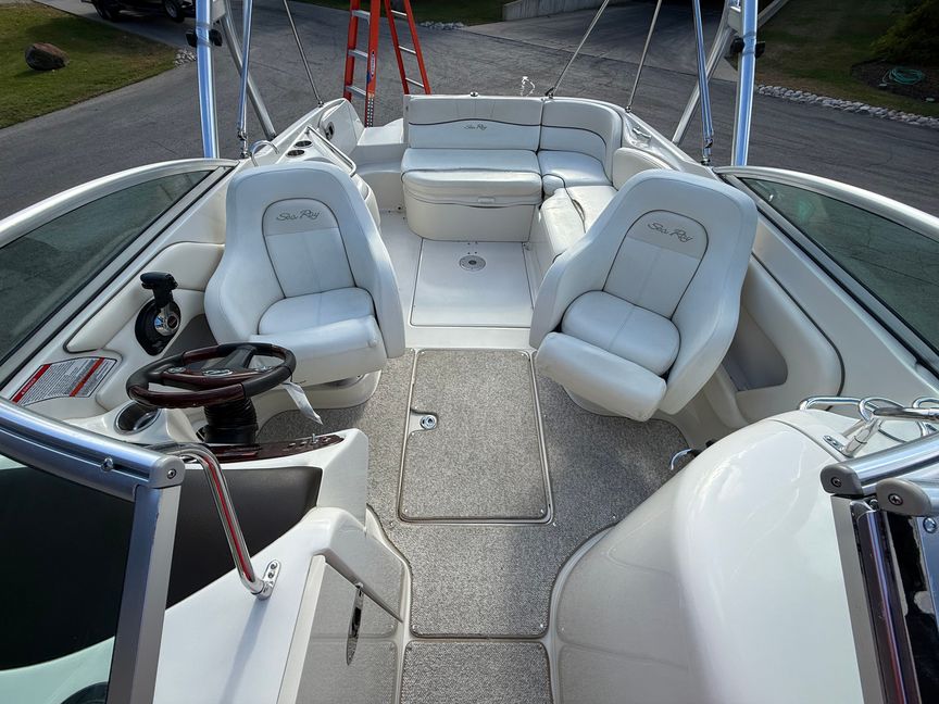 2008 Sea Ray 240 Sundeck – Spacious, Stylish, and Built for Fun Enjoy the best days on the water aboard this 2008 Sea Ray 240 Sundeck—a perfect blend of sporty performance and family-friendly comfort. Known for its reliability and thoughtful design, the 240 Sundeck offers everything you need for effortless entertaining, watersports, and relaxing days at the sandbar. This Sea Ray features Sea Ray’s signature deep-V hull for a smooth, confident ride even when the lake gets busy. Step aboard and you’ll instantly appreciate the generous open layout, plush wraparound seating, and abundant storage—ideal for bringing all your gear, family, and friends along for the adventure. -